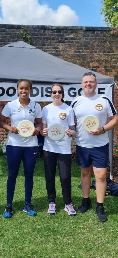 Amidst the laughter and cheers, we were joined by some prominent figures from the sports world, including the Ex Everton-FC Women's captain, Michelle Hinnigan, and World Champion Boxer, Natasha Jonas. Their presence brought an extra layer of excitement to the event, and it was heart-warming to see them embracing the world of Disc Golf with enthusiasm.
